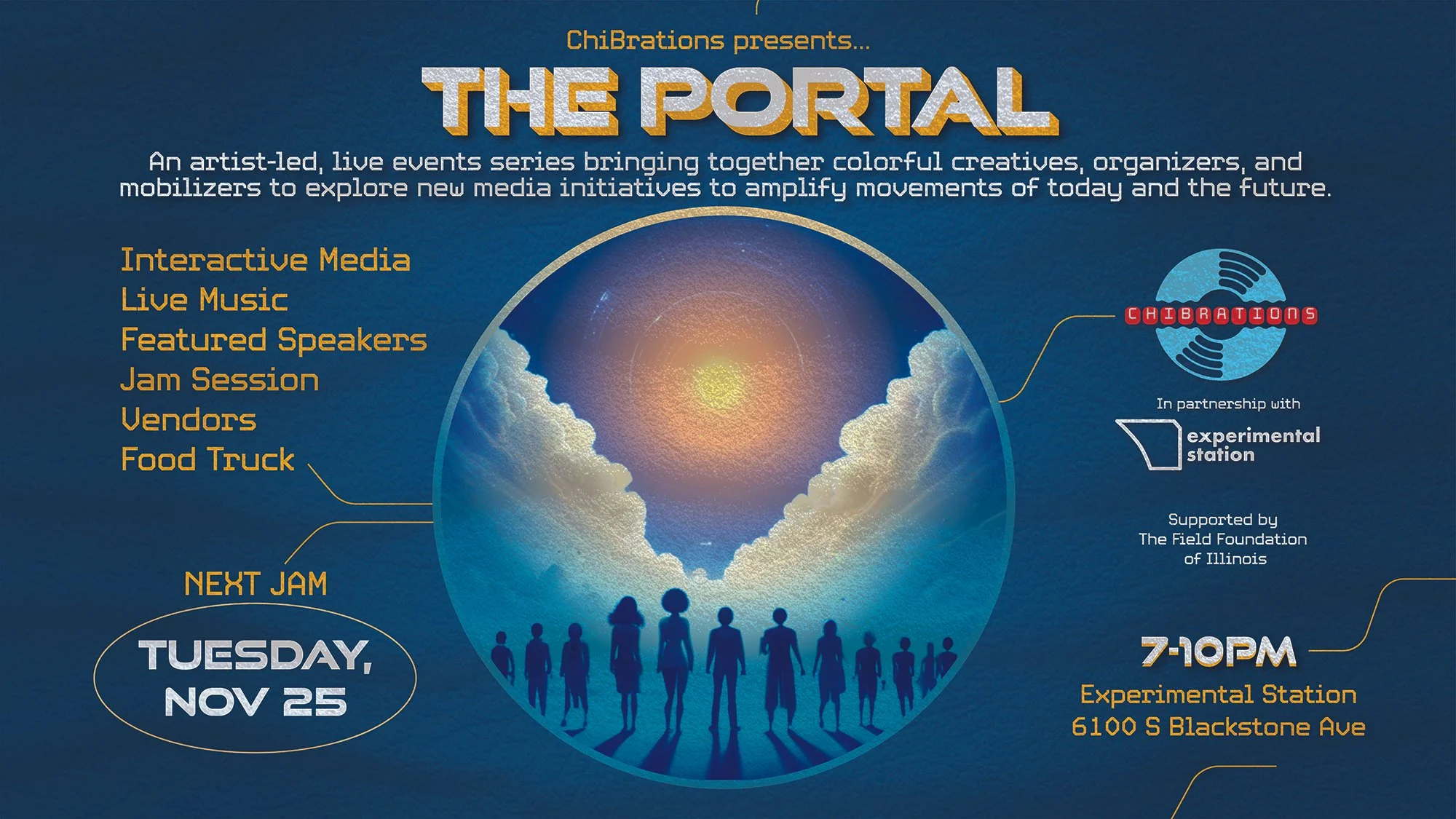 The Portal is a hybrid art series led by Sam Thousand and Chibrations, bringing musicians, dancers, visual artists, and creators of all kinds into one shared space to experiment, build, and connect.