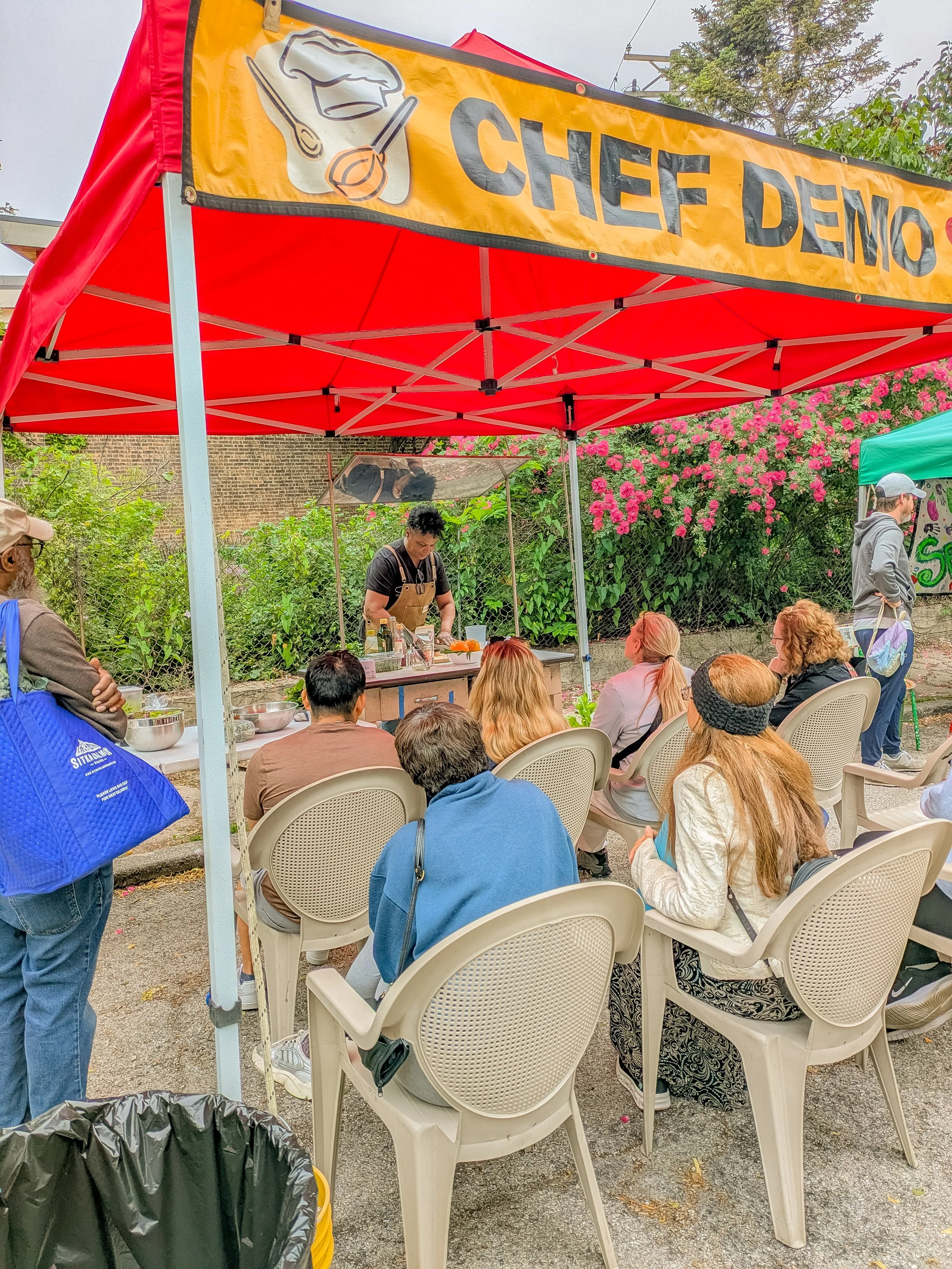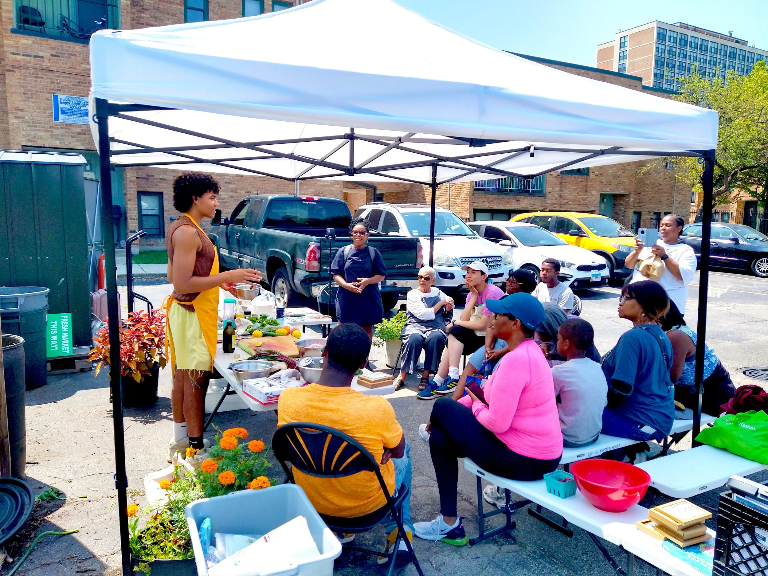 Additionally, we offer weekly fresh produce samplings at the local Department of Human Services office, along with fliers and magnets promoting the 61st Street Farmers Market.