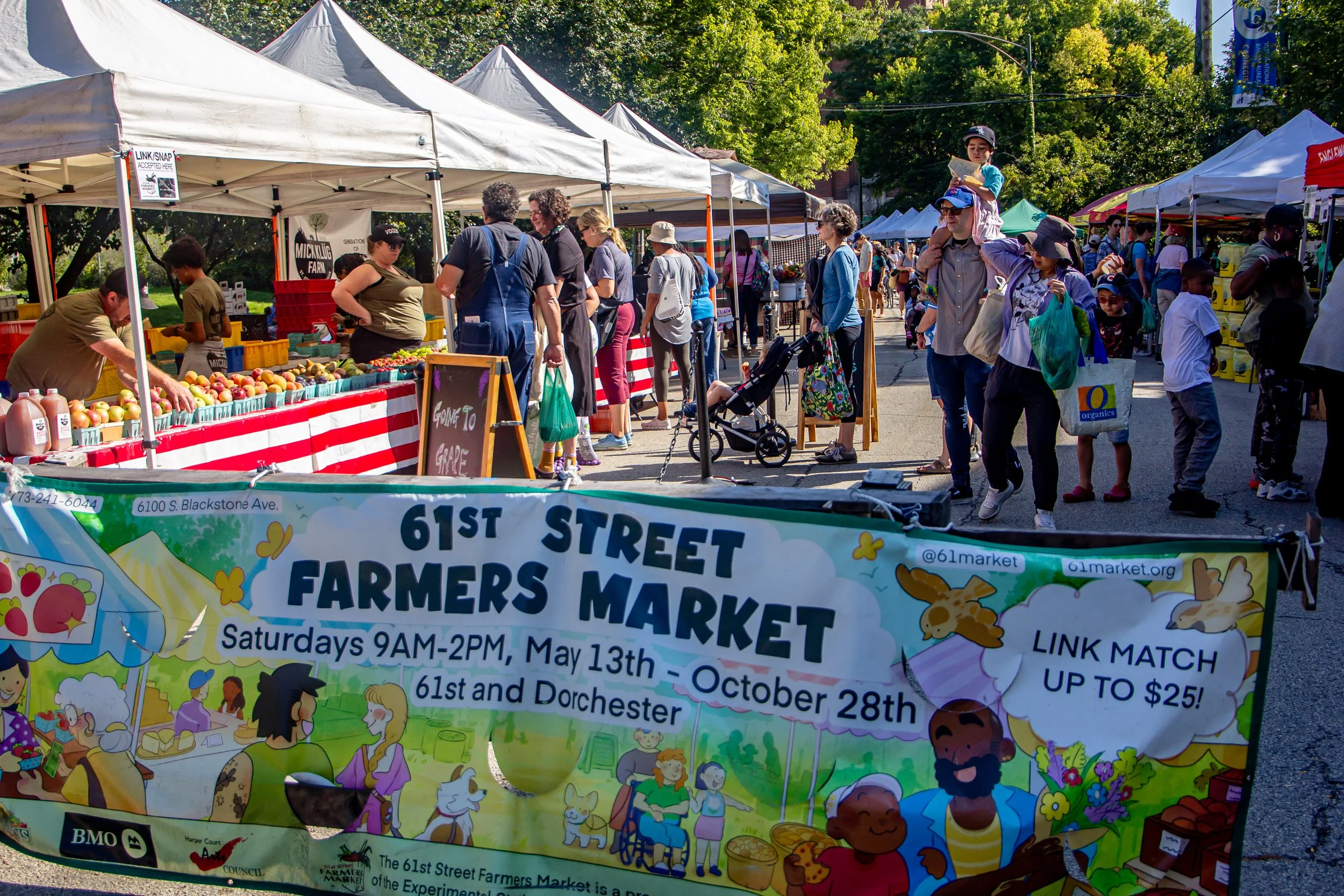 Volunteering for the 61st Street Farmers Market involve setting up booths, attending info booth, and assisting with publicity and outreach. Outside of the market hours, volunteers can also help with the seedling, weeding, mulching, or harvesting at the hoop house (garden for Jackson Park Terrace Community) located at 60th and Stony Island.